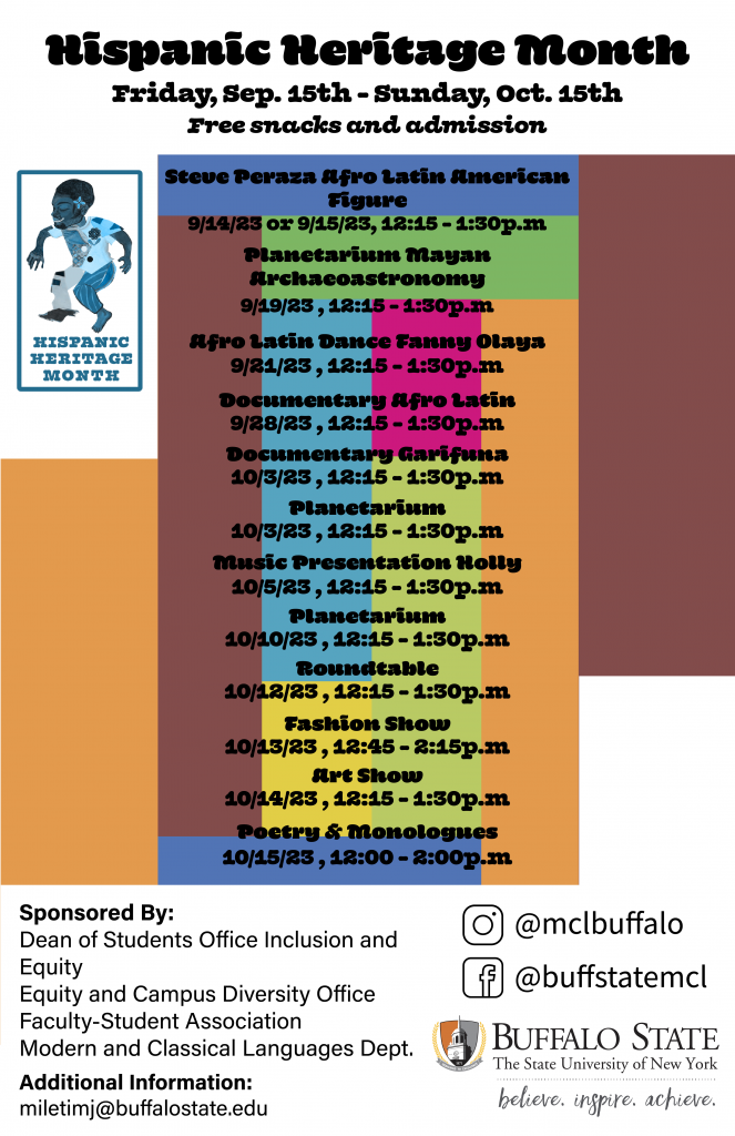 General poster fo the Hispanic Heritage Month. One of the expressions of Cubism is a whole made up of multiple blocks. In order to fit this style, background image combines rectangles of different colors to form a new pattern.